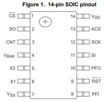 PFI上的比較器將外部輸入引腳與板載1.5V參考進(jìn)行比較。這對于生成電源故障中斷(NMI)很有用,但可用于任何目的。該系列還包括一個可編程的64位序列號,可以鎖定使其無法更改。此外它還提供了一個事件計數(shù)器,用于跟蹤在專用輸入引腳上檢測到的上升沿或下降沿的數(shù)量。計數(shù)器可以在VDD電源下編程為非易失性或僅使用VBAK由電池供電。如果VBAK連接到電池或電容器,則即使在沒有VDD的情況下也會對事件進(jìn)行計數(shù)。