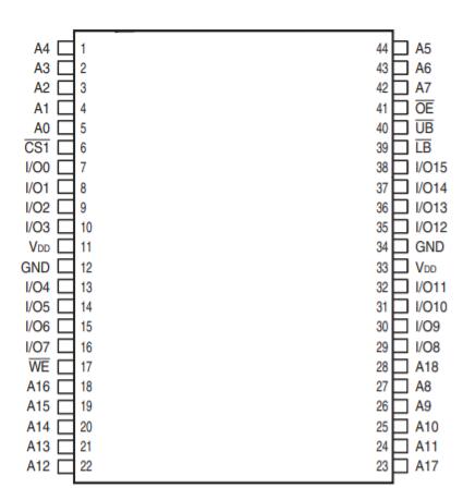 SRAM芯片型號(hào)IS62WV51216,管腳圖如下: