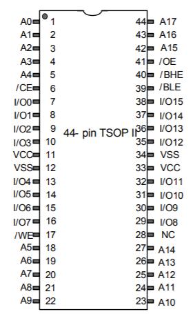 數(shù)據(jù)讀取是通過將芯片使能(CE)和輸出使能(OE)輸入置為低電平并在地址線上提供所需地址來執(zhí)行的。讀取數(shù)據(jù)可通過I/O線(I/O0到I/O15)訪問。字節(jié)訪問可以通過置位所需的字節(jié)使能信號(hào)(BHE或BLE)來執(zhí)行,以從指定地址位置讀取數(shù)據(jù)的高字節(jié)或低字節(jié)。
