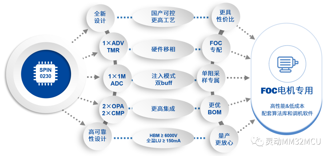 國(guó)產(chǎn)單電機(jī)控制32位電機(jī)MCU靈動(dòng)微MM32SPIN0230